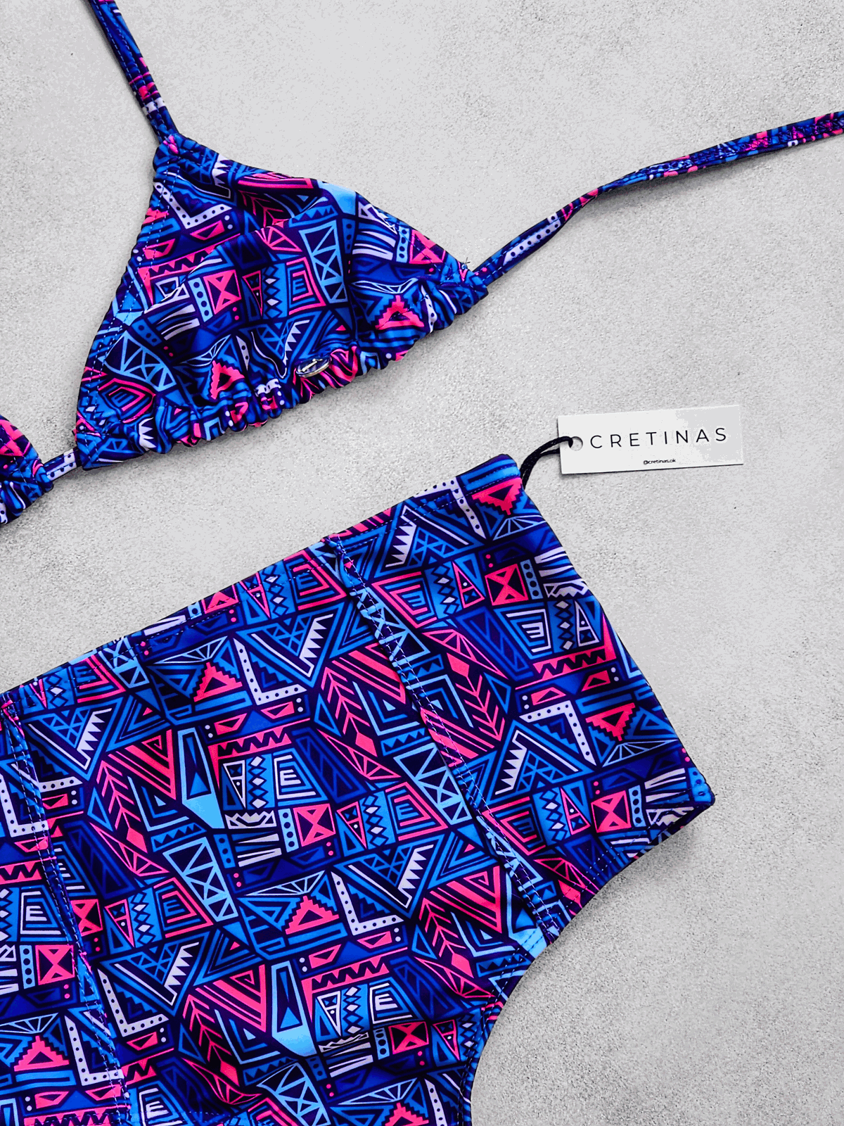 Conjunto de primera calidad. Corpiño triángulo para atar sin tazas. Bombi colaless tiro alto.