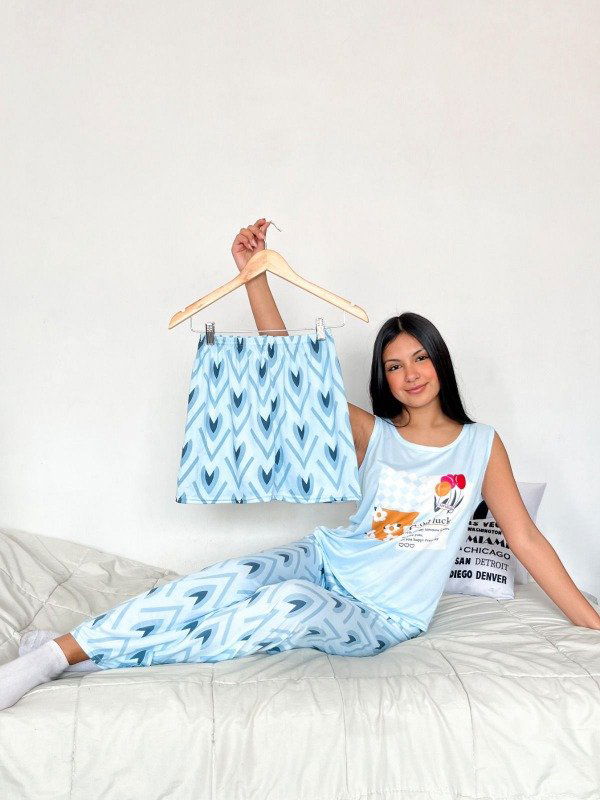 Conjunto modal soft. Remera musculosa con short y pantalón largo