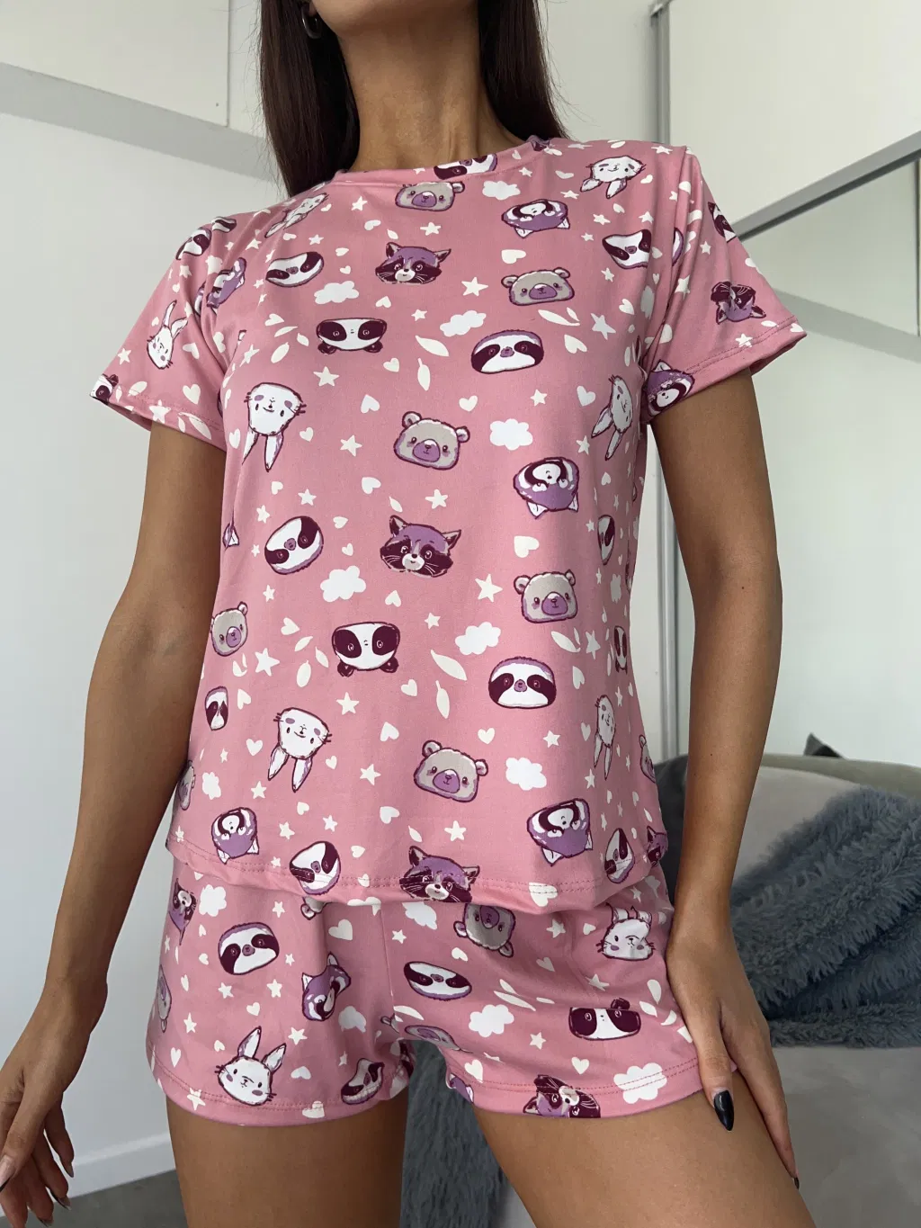 Conjunto modal con lycra, brilla en la oscuridad. Remera mangas cortas con short