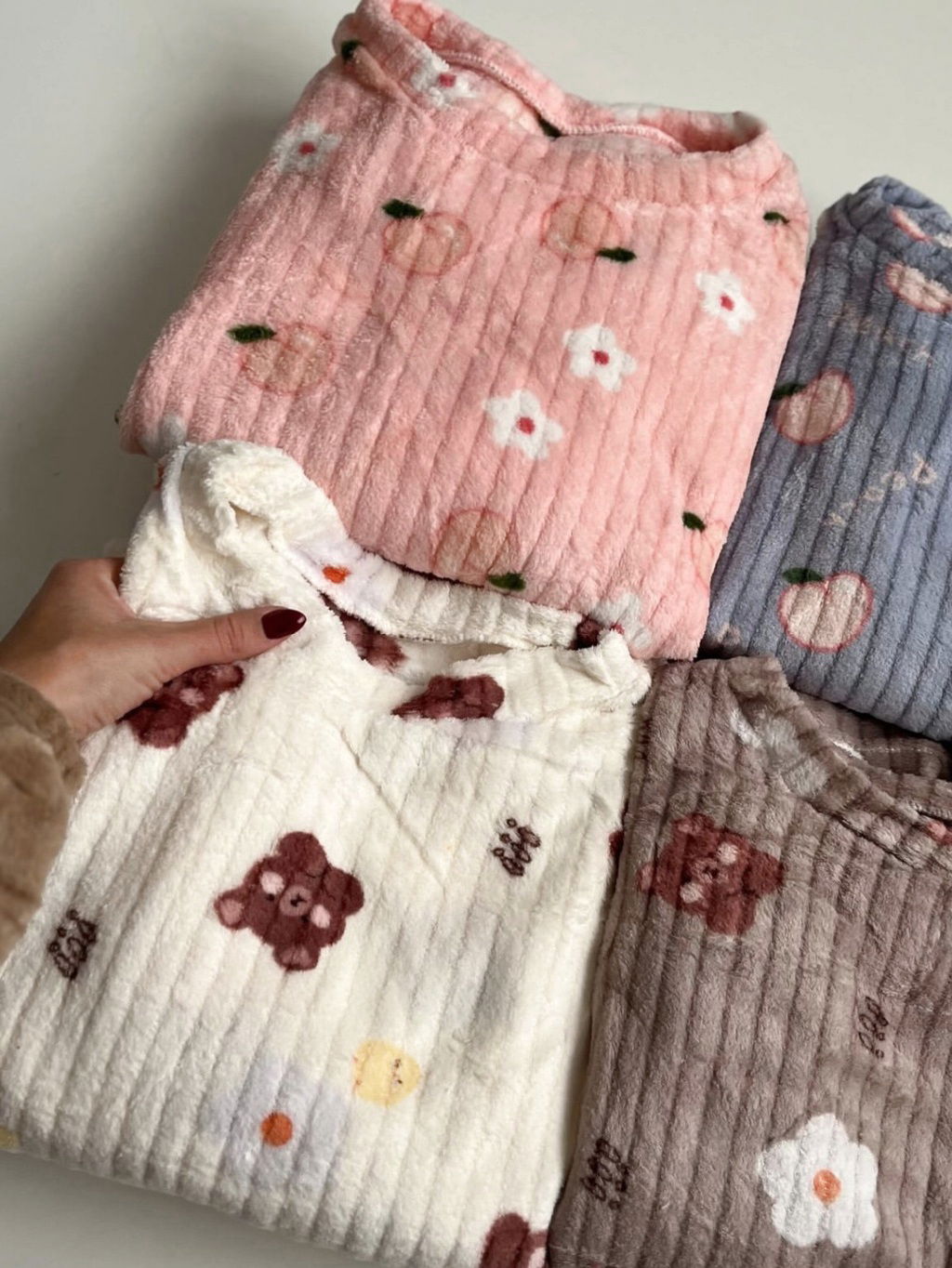 Conjunto polar soft acanalado estampado. Buzo y pantalón largo.