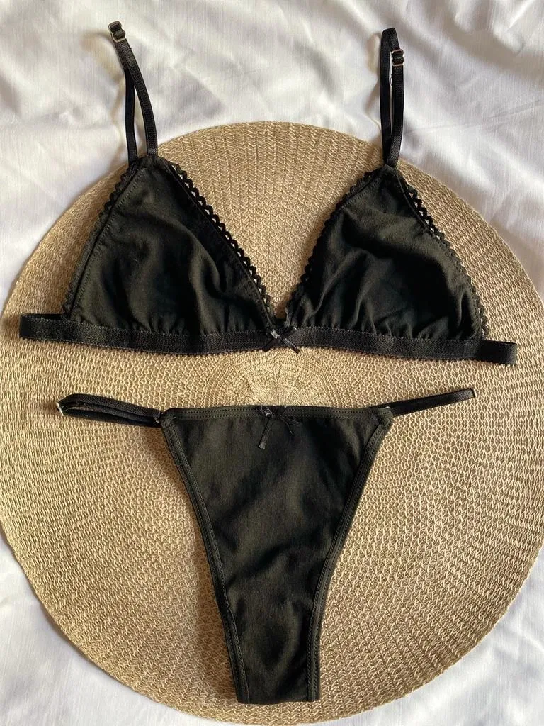 Set de algodón con puntilla. Corpiño sin push con breteles regulables y broche para prender. Less regulable.