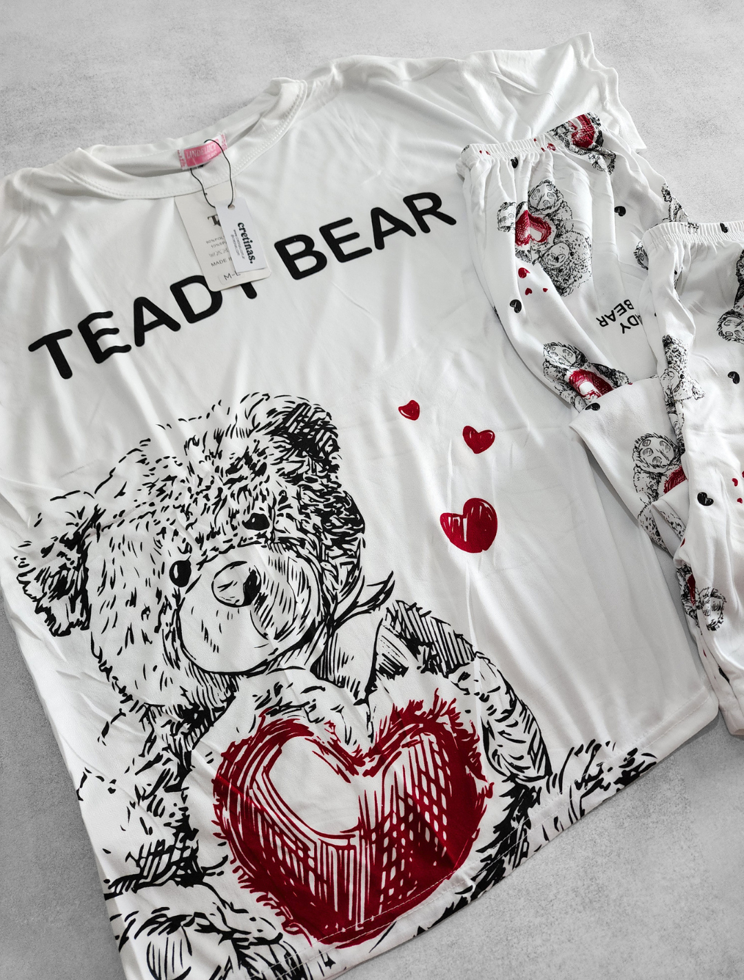 Pijama importado 3 piezas: remera manga corta, short con cintura elastizada y pantalón largo con cintura elastizada.