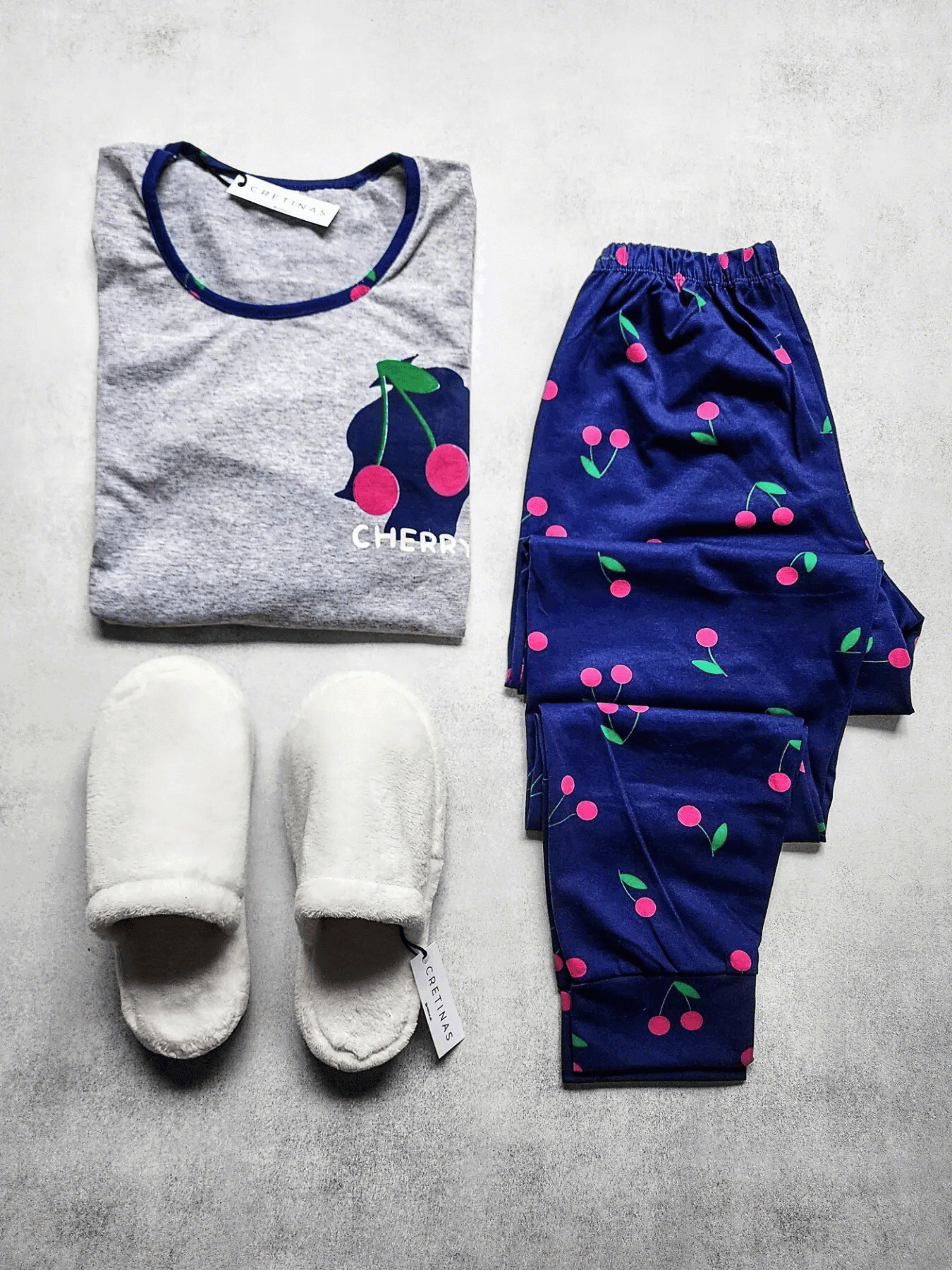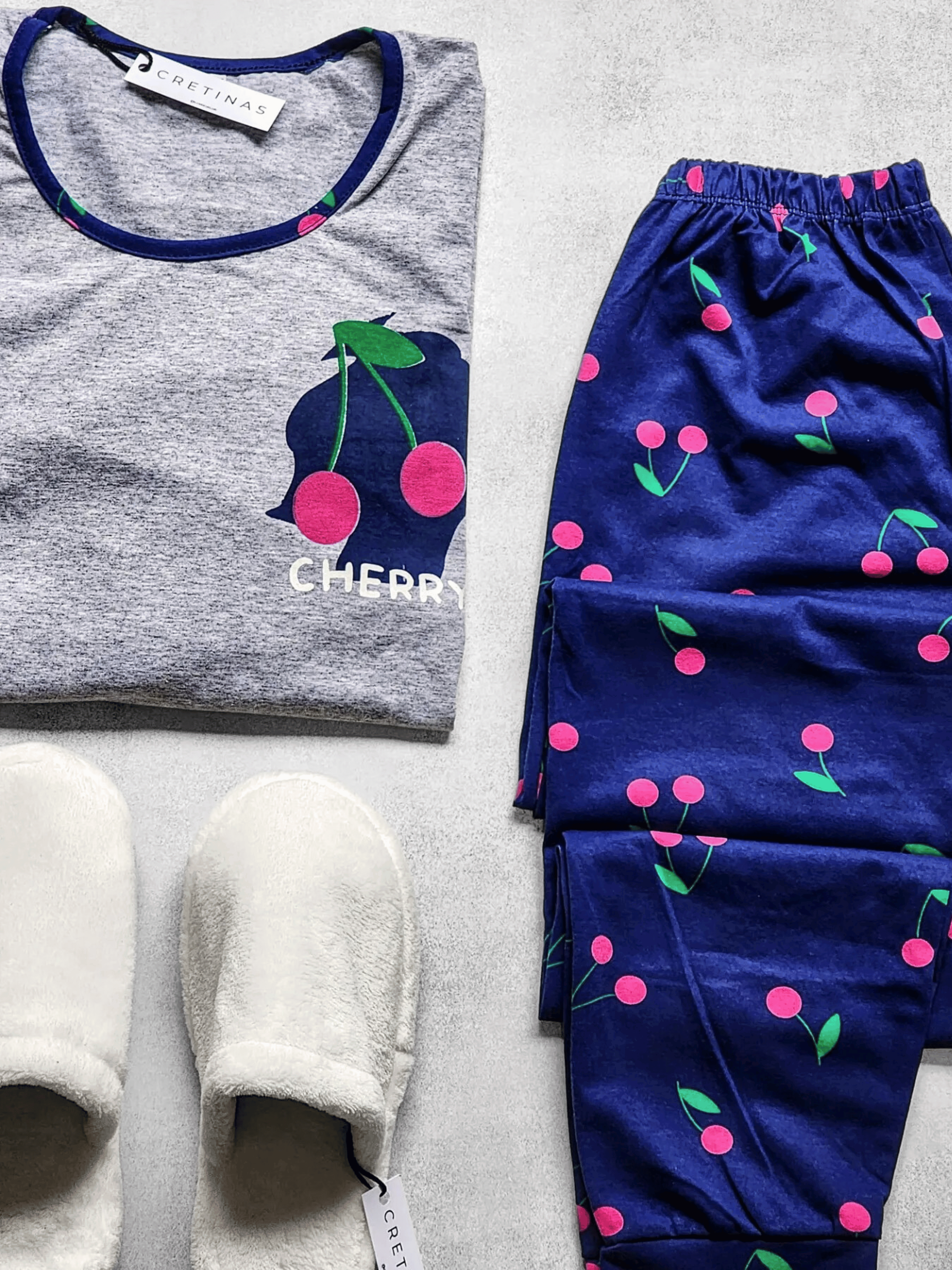 Conjunto de algodón. Remera mangas largas. Pantalón largo con refajo.