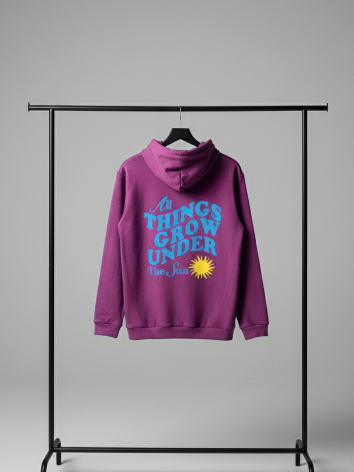 Buzo canguro de algodón frizado, corte OVERSIZE. Estampa en la espalda. Cordón ajustable en capucha