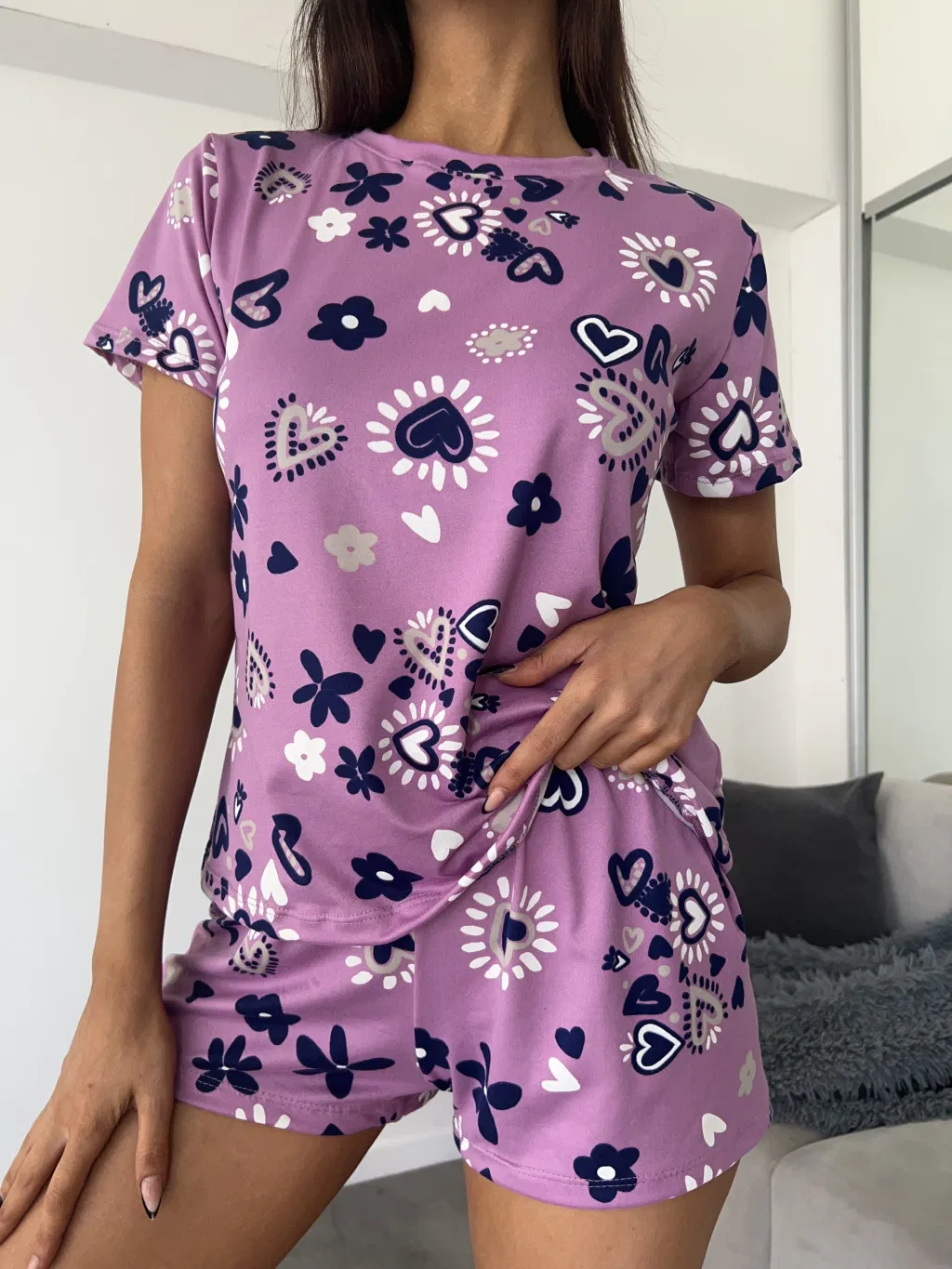 Conjunto modal con lycra, brilla en la oscuridad. Remera mangas cortas con short