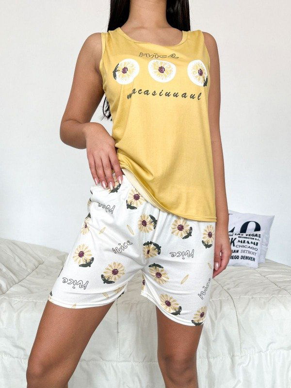 Conjunto modal soft. Remera musculosa con short y pantalón largo