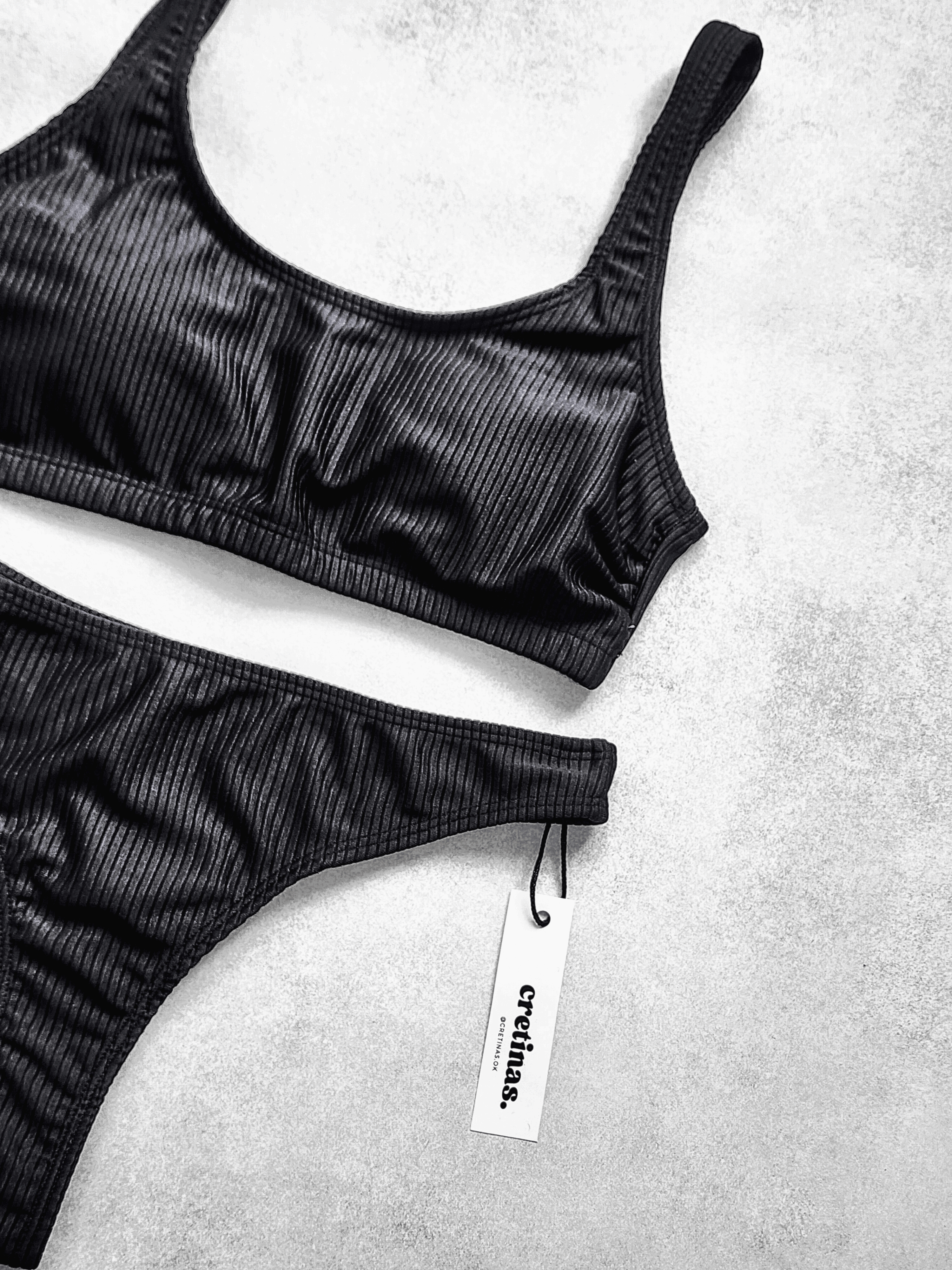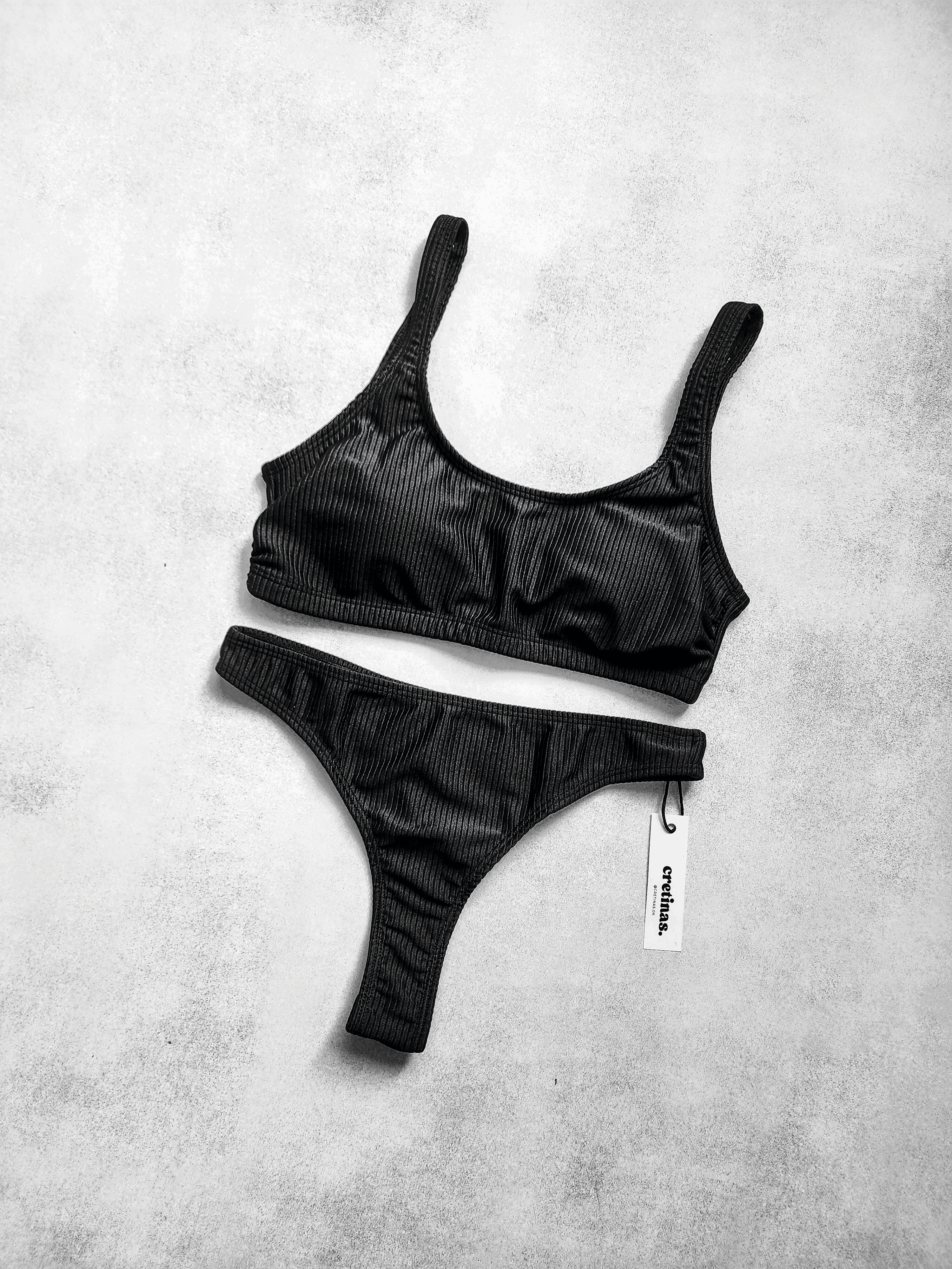 Conjunto estampado tricot. Corpiño tipo deportivo con tazas desmontables. Bombacha colaless