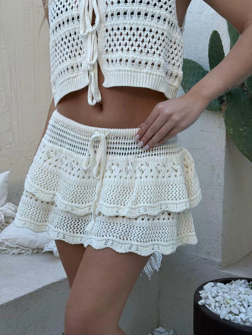 Pollera tejida de hilo algodón con volados.