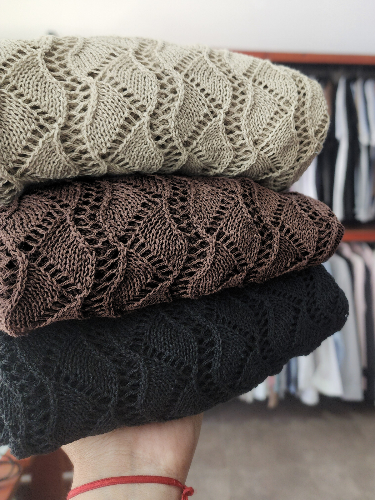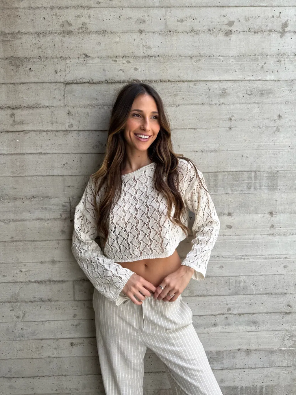 Top tejido de hilo acrílico, mangas largas.