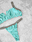 Conjunto de lycra premium con protección UV, completamente forrado. Corpiño top para atar, con abertura V en el centro y breteles regulables. Bombacha less regulable